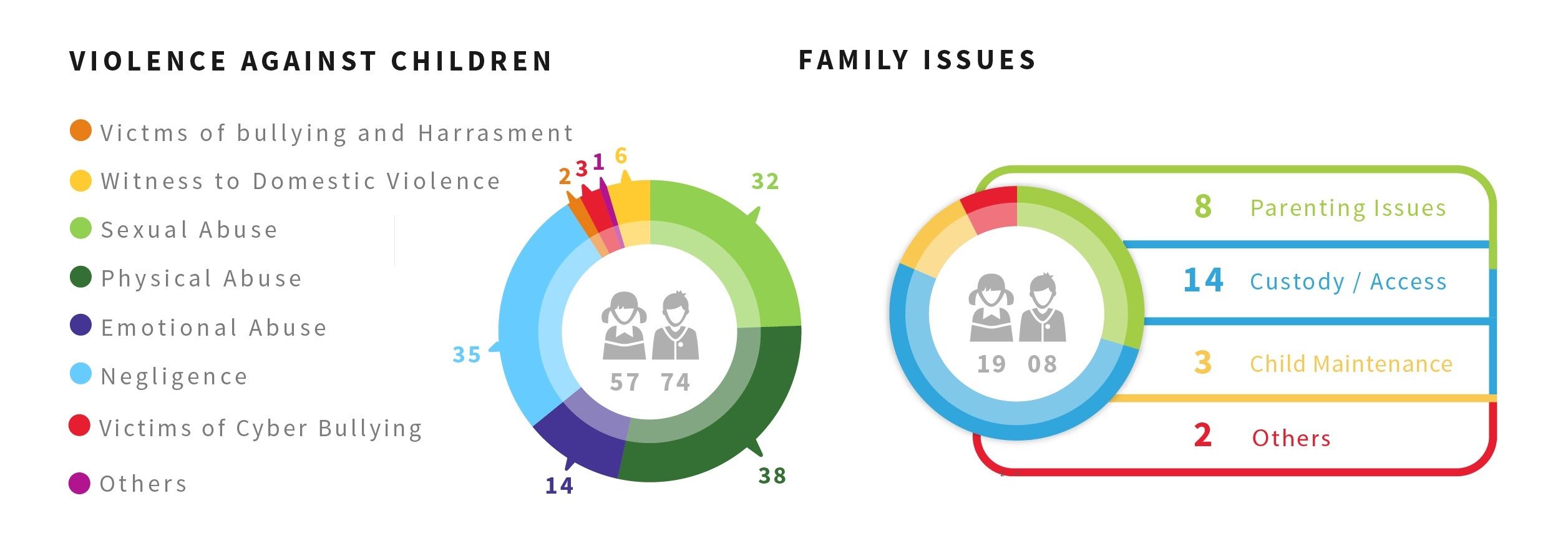 There were 38 cases of physical abuse and 32 cases of sexual abuse.