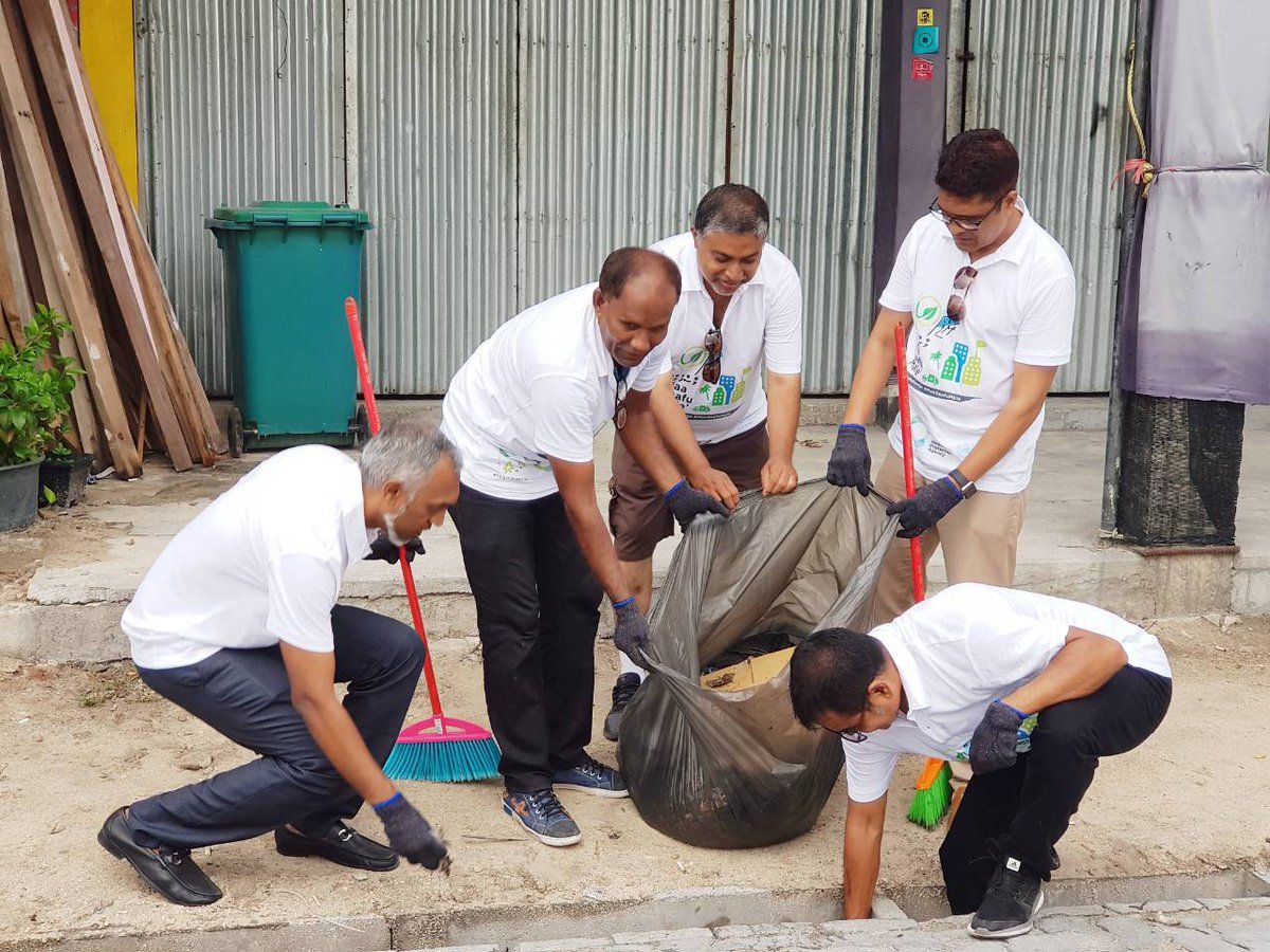 The programme dubbed Maa Saafu Malé was organised by the environment ministry and the Waste Management Corporation, which on Thursday took over cleaning Malé from the housing ministry.