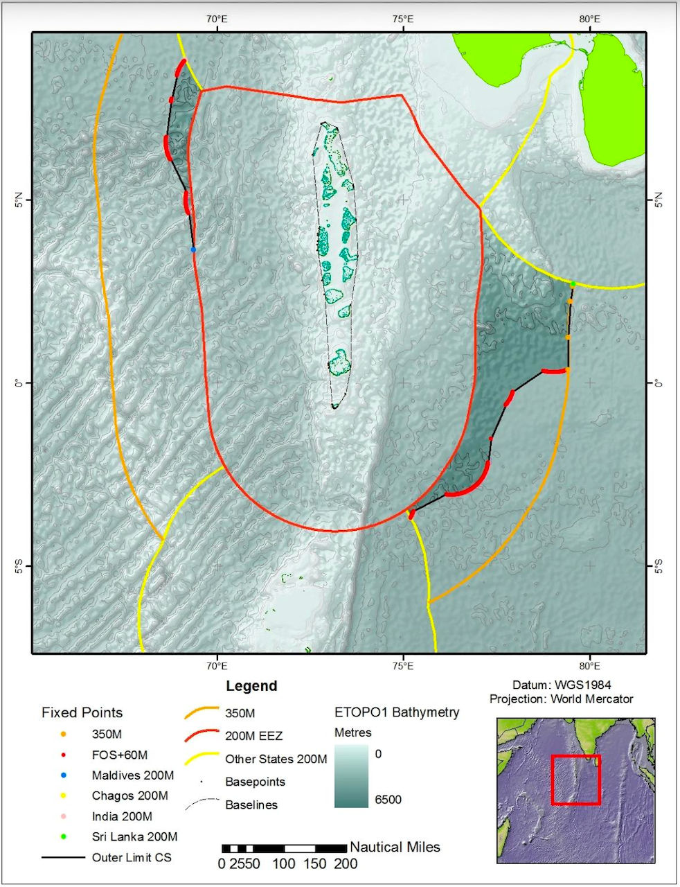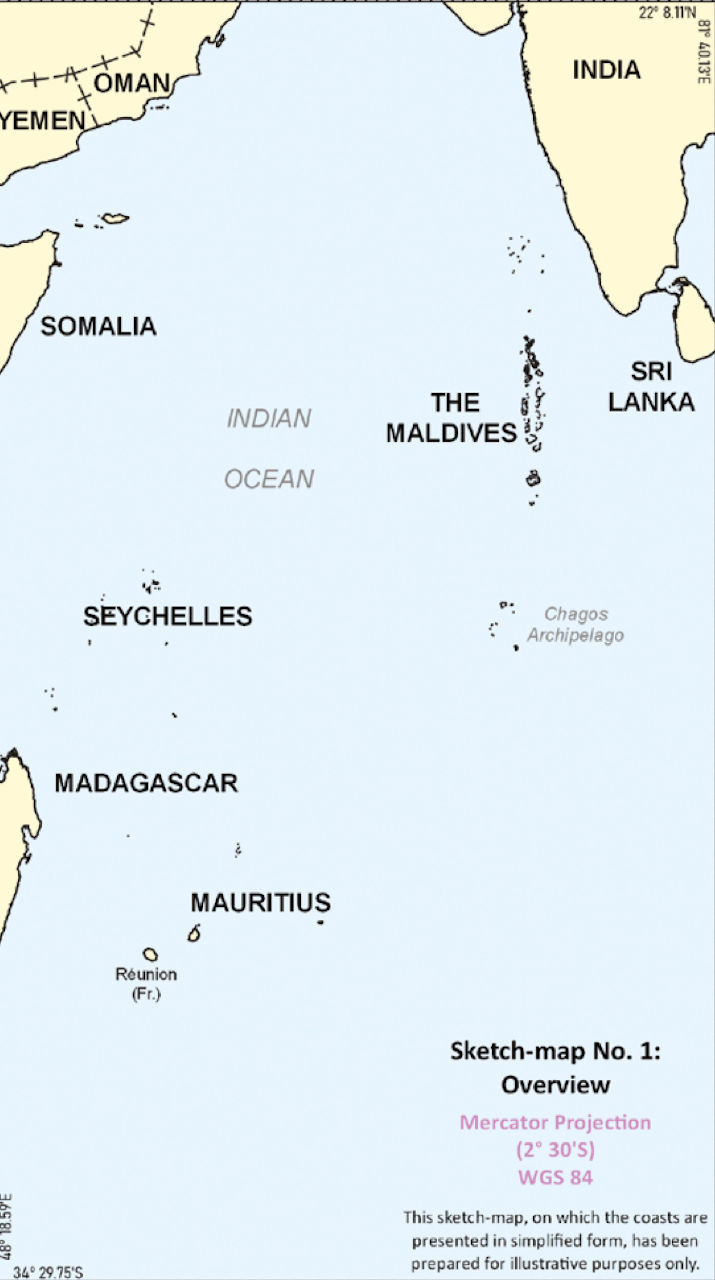 3. The extended continental shelf. In 2010, the Maldives submitted a claim to the UN for seabed rights beyond its 200-nautical-mile EEZ, in waters between the Maldives and Chagos. This is a third, distinct legal process. The UN Commission on the Limits of the Continental Shelf has yet to reach a judgment.