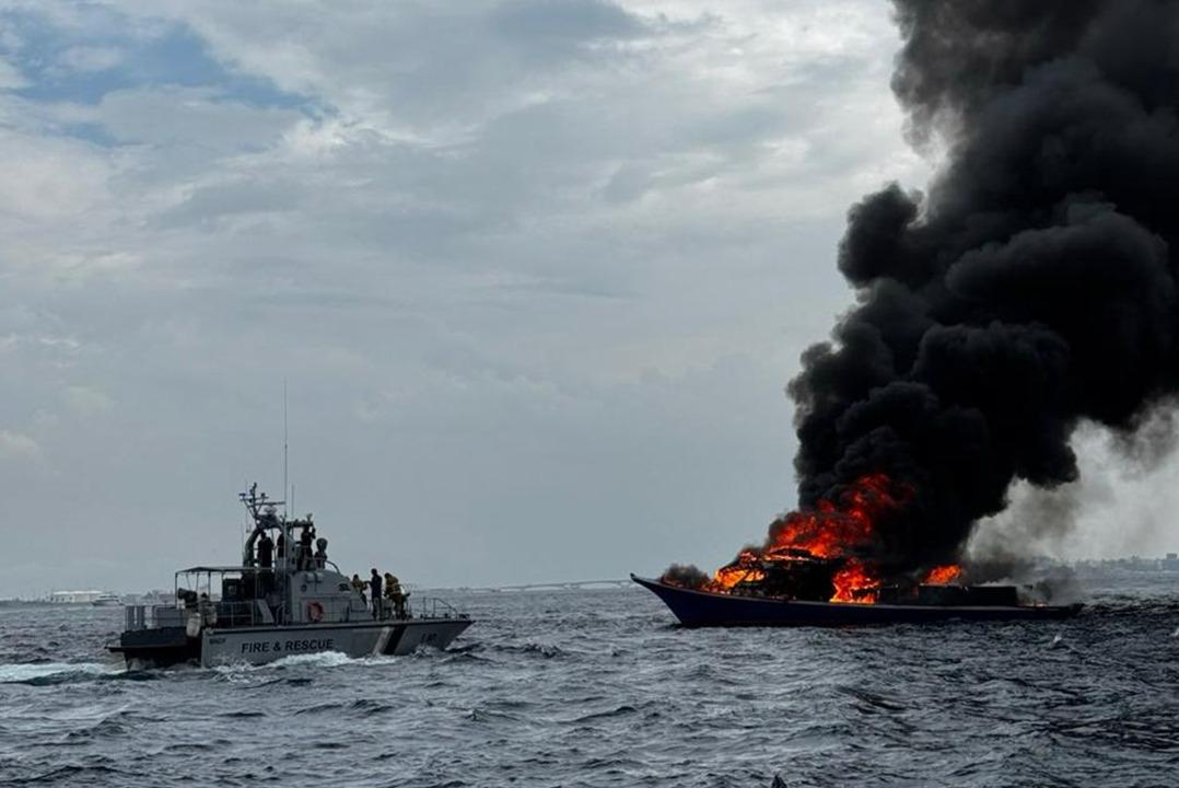 Five crew members of a fishing vessel were injured with burns after it caught fire near Dhoonidhoo on Saturday afternoon. The yellowfin tuna fishing boat, Fresh from the Sea, sank on Saturday evening as firefighters attempted to extinguish the blaze, the MNDF said. All 15 crew members were rescued but police said two Maldivians and three expatriates were brought to Malé on a resort vessel after suffering injuries. MNDF advised seafarers to be look out for debris floating 0.38 nautical miles south from Dhoonidhoo.