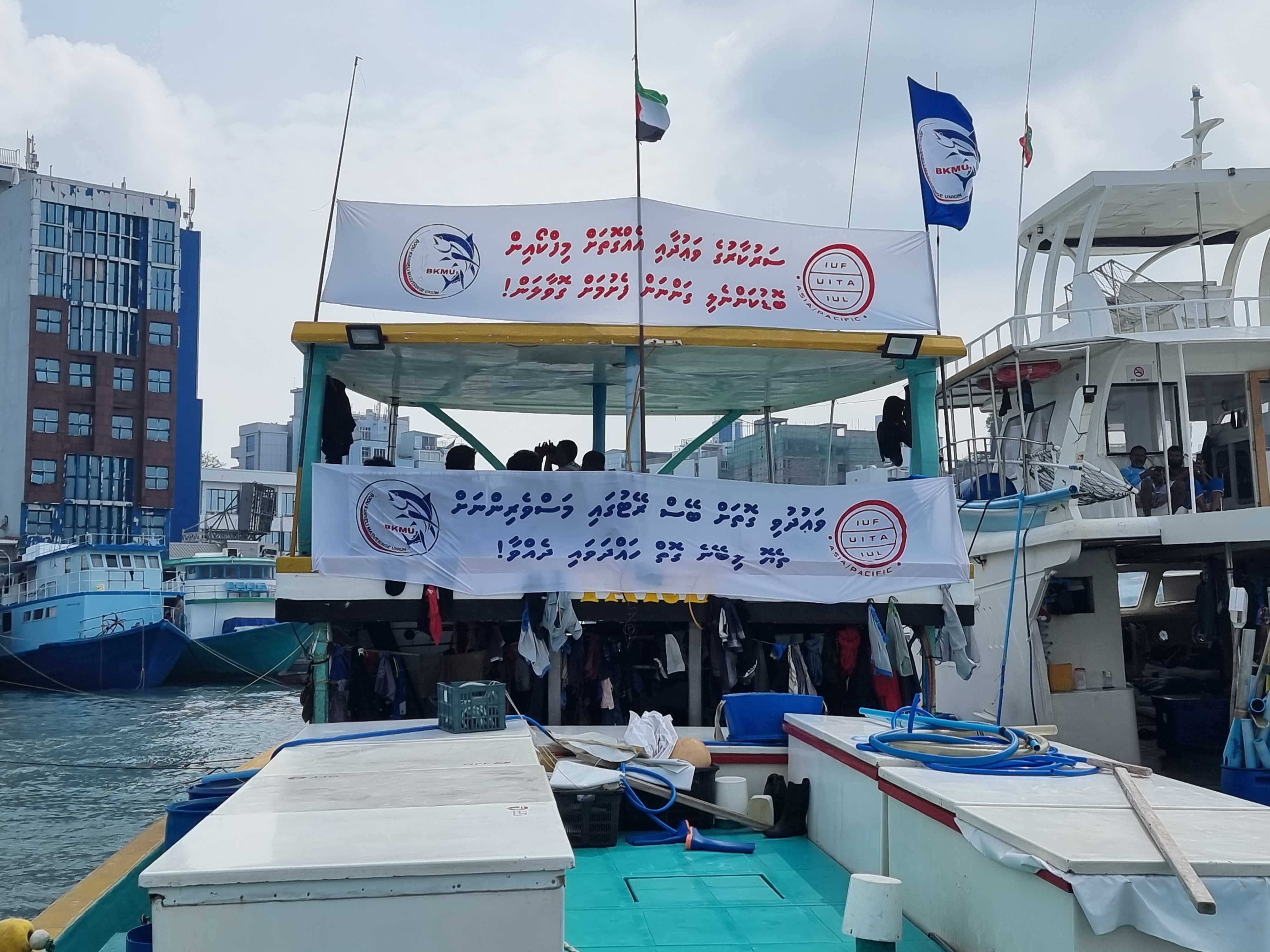 Police cracked down on yellowfin tuna fishermen protesting on boats outside Malé’s harbour for the second day. Immigration officers detained four migrant workers as police officers took control of two boats and steered them towards the nearby police detention island of Dhoonidhoo. MDP MP Mauroof Zakir and protest organisers from the Union of Yellowfin Tuna Fishermen were taken into custody. The opposition lawmaker, former national football team goalkeeper Imran Abdulla and one other man were arrested for obstructing officers and disobeying orders, police told the media. The protest began on Wednesday morning with 49 fishing vessels heading from Hulhumalé to the Malé harbour, where a Coast Guard ship and police vessel blocked the entrance.