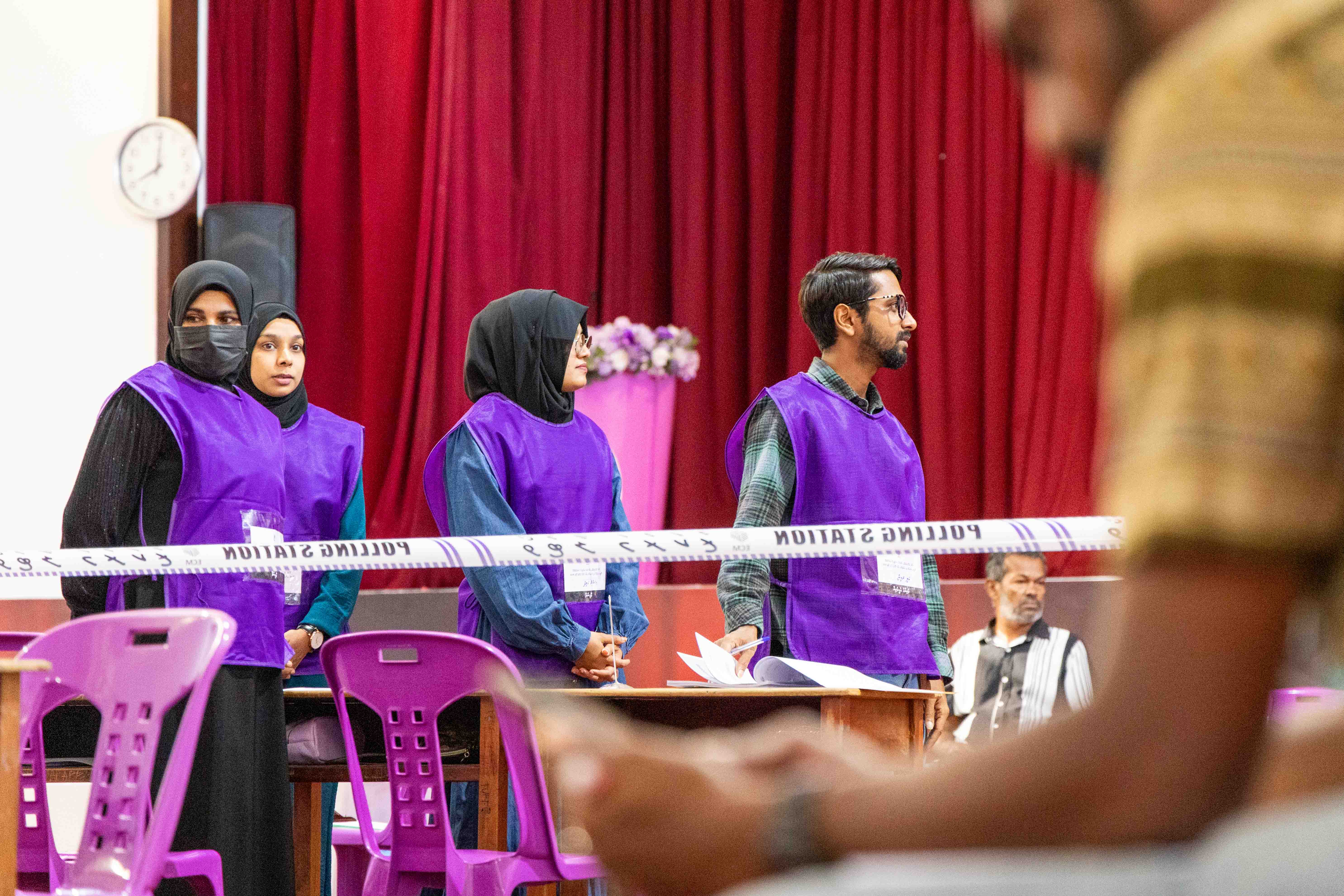The extension came after a troubled start. Voting was scheduled for 8am but did not begin at all 588 polling stations until around 9:30am because the required members of the public had not arrived to witness the opening. Transparency Maldives, which deployed 31 observers across Greater Malé and 15 atolls, reported that 15 of its 26 observed stations opened by 8:10am and all were open before 9am. Administrative preparation was otherwise smooth: materials were in place, ballot papers counted, and all boxes verified empty.