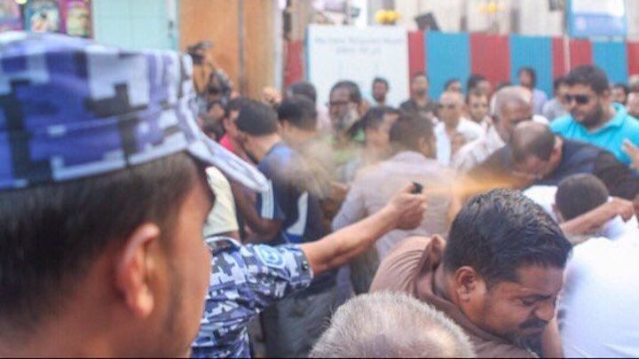 Specialist Operations police officers then blocked the walk and pepper sprayed several people at close range, including the MDP’s deputy chairperson Ali Niyaz – who was rushed to hospital with difficulty breathing – as well as the party’s MPs and national council members.