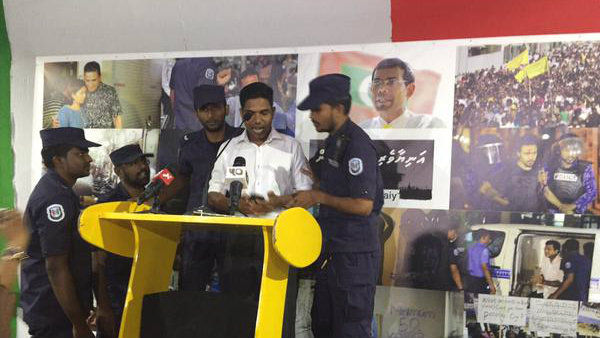 Police entered the opposition’s headquarters at Artificial Beach around midnight without a court warrant and arrested Shifaz while he was addressing a crowd of supporters.
