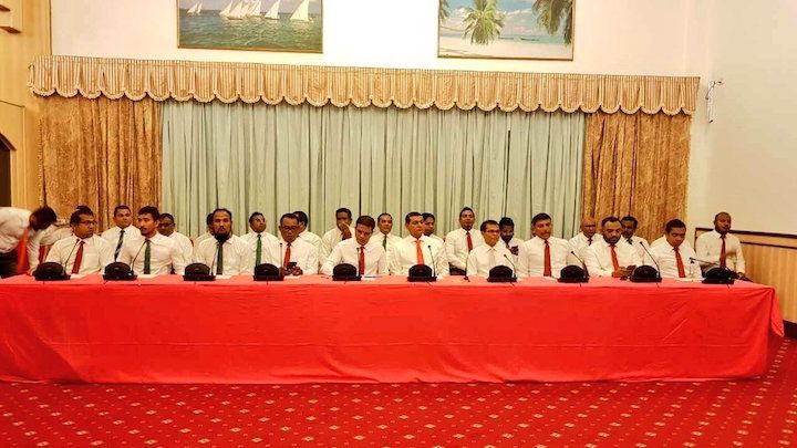 At a press conference Tuesday morning with 28 MPs from the PPM and ally Maldives Development Alliance – including four who were elected on other political party tickets – senior lawmakers contended that a legal remedy for party switching is long overdue.