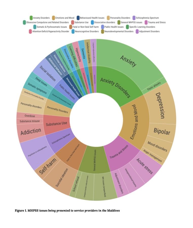 Some service providers reported waiting lists of 60 to 100 people. The National Mental Health hotline received more than 12,000 calls over two years. These numbers continue to grow. Specialised services are concentrated in Malé, leaving other islands with significant gaps, and schools have "unmanageable student-to-counsellor ratios."