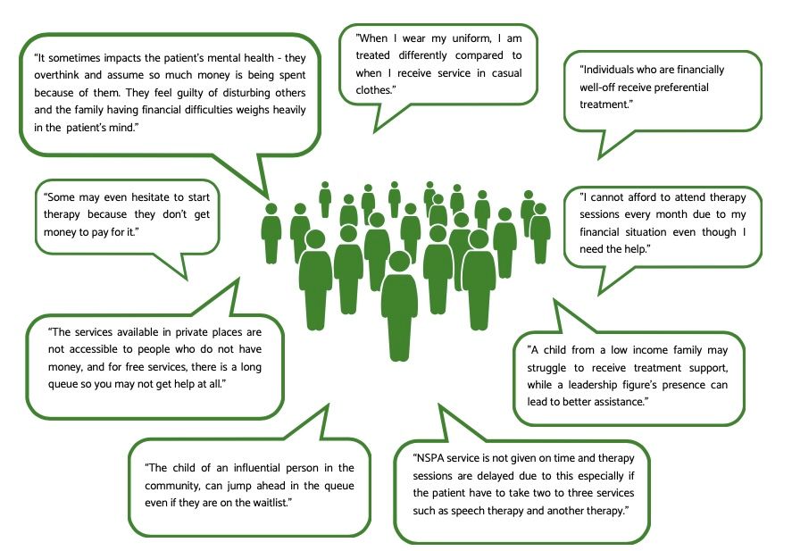 Confidentiality breaches compound the problem. "If you are from a poor family, confidentiality leaks quickly," one service seeker said. Another noted: "It's hard to open up when you don't know how they will talk about you later."