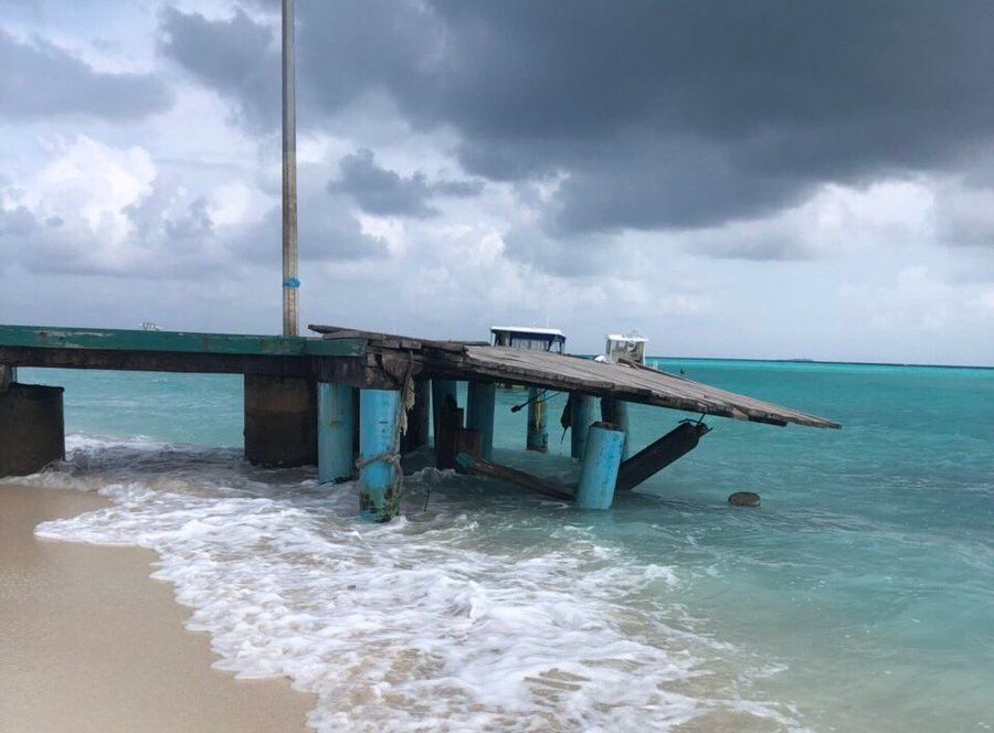 Parts of the wooden pier fell off after strong winds on Monday and metal beams were dangerously jutting out, Fulidhoo council president Sana Abdul Wafir told the Maldives independent.
