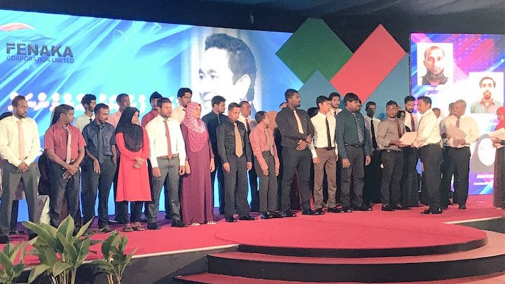 According to the Fenaka Corporation, the 79 men and 21 women will work at its branches and powerhouses in the atolls. President Abdulla Yameen and First Lady Fathmath handed out letters of employment at a ceremony Sunday morning.